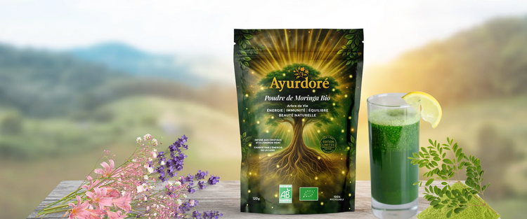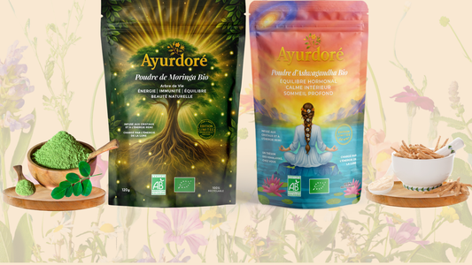 Nos poudres de moringa et d'ashwagandha biologiques sont de puissants adaptogènes ayurvédiques. Elles favorisent l'équilibre hormonal, le système immunitaire, la réduction du stress, un sommeil réparateur et une peau éclatante, tout cela naturellement.